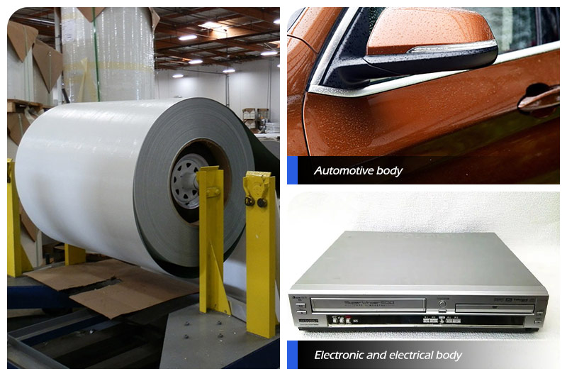 Acrylic resin coated aluminum coils are mainly used in automobile bodies, electronic and electrical bodies, building exterior walls, etc.